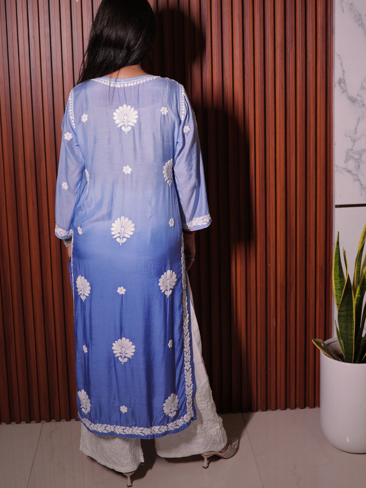 Handcrafted Ombre shade premium Muslin 3D chikankari long kurti